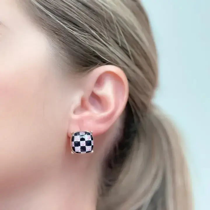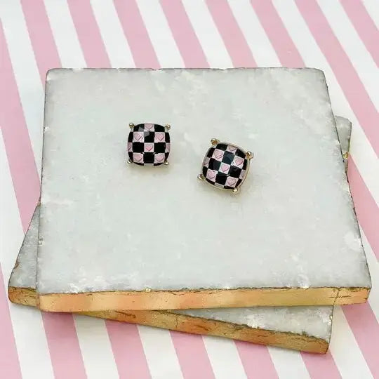 Embrace your minimalist style with our Checkered Pink Heart Printed Glass Stud Earrings from Prep Obsessed Wholesale. These earrings, compliant with lead and nickel regulations, feature a 0.50" stud, perfect for those who appreciate understated elegance. Originally curated by our founders, Nina & Corey, these earrings continue their mission to provide amazing finds for amazing boutiques nationwide.