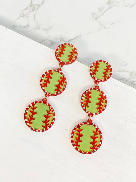 Introducing our Glitzy Tiered Acrylic Softball Earrings - the perfect accessory for any softball lover! Made of high-quality acrylic, these earrings are both stylish and durable. Show off your love for the game with a touch of glam.