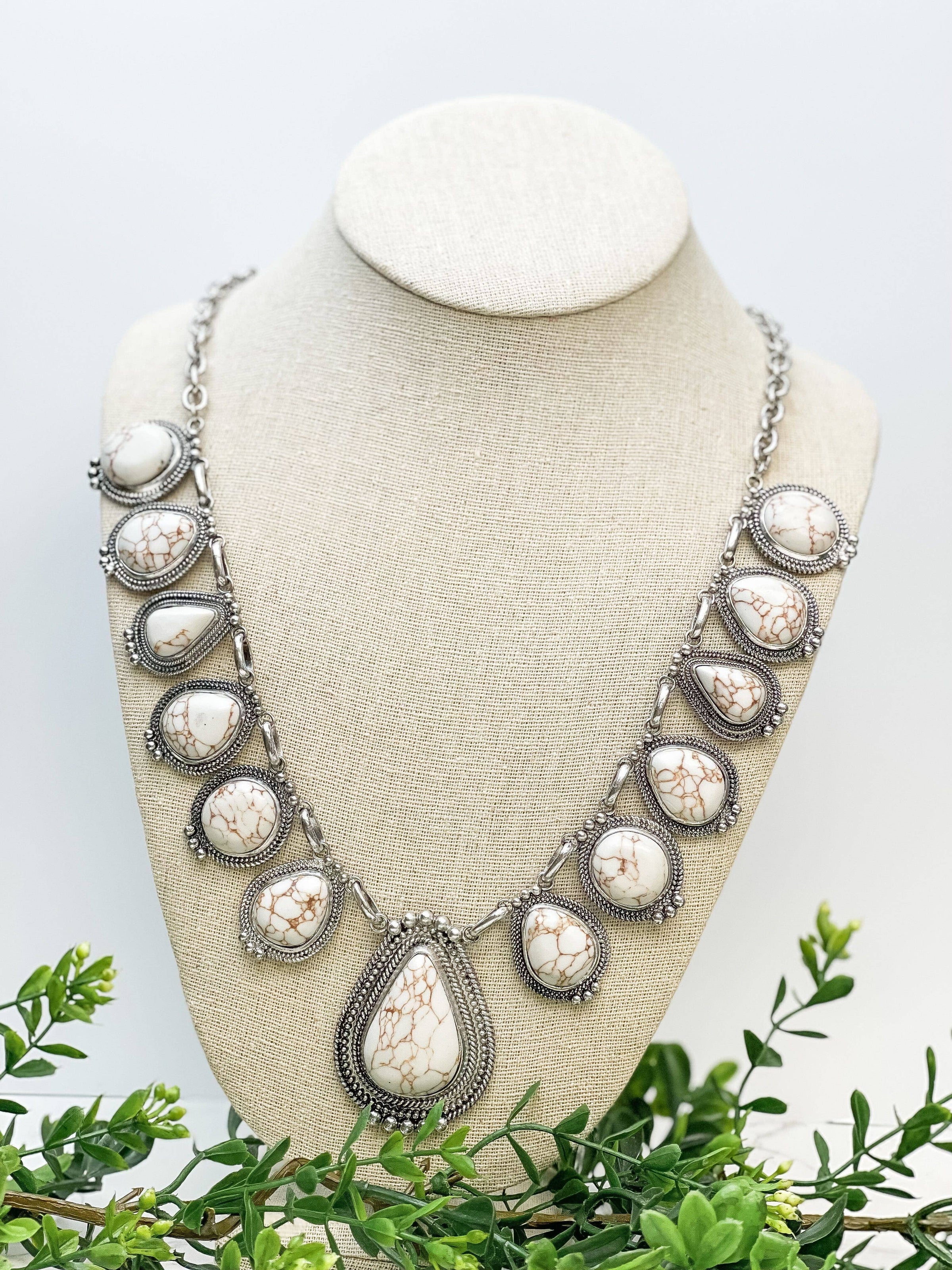 From Prep Obsessed Wholesale, we present the Ivory Semi Precious Western Teardrop Necklace. This exquisite piece, extending 16" with a 3" extender, exhibits a captivating blend of elegance and western charm. It's more than just jewelry; it's a statement of style and sophistication.