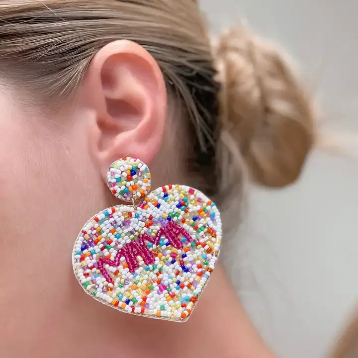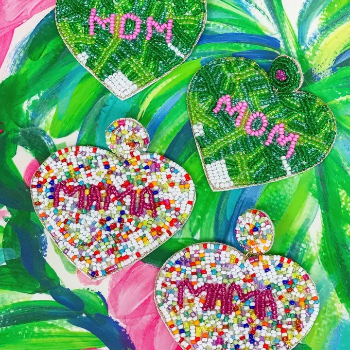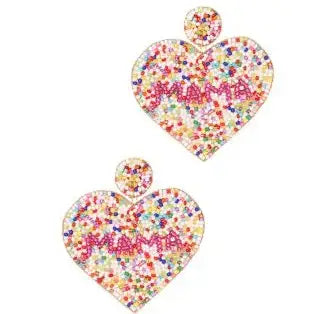 Embrace the joy of motherhood with our 'Mama' Multi Seed Bead Heart Earrings from Prep Obsessed Wholesale. These dangle earrings, measuring 2.50" L, are meticulously crafted, adhering to our strict lead and nickel compliance standards. Inspired by the love and warmth of a mother's heart, the earrings feature multiple seed beads arranged in a heart shape. They make a perfect gift for yourself or the amazing mom in your life. Enjoy the quality and creativity that Prep Obsessed Wholesale brings to your accessories collection.