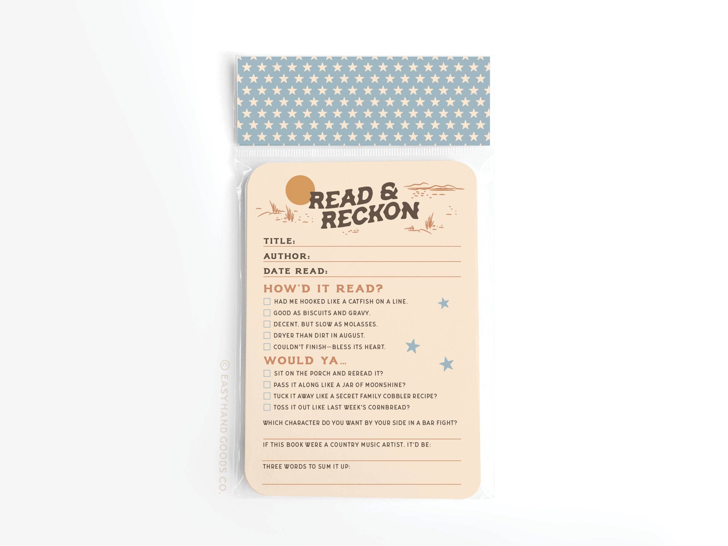 With a western-inspired look and feel, Read & Reckon Book Review Card helps you rate the story, reflect on the ride, and decide if it was worth the read.