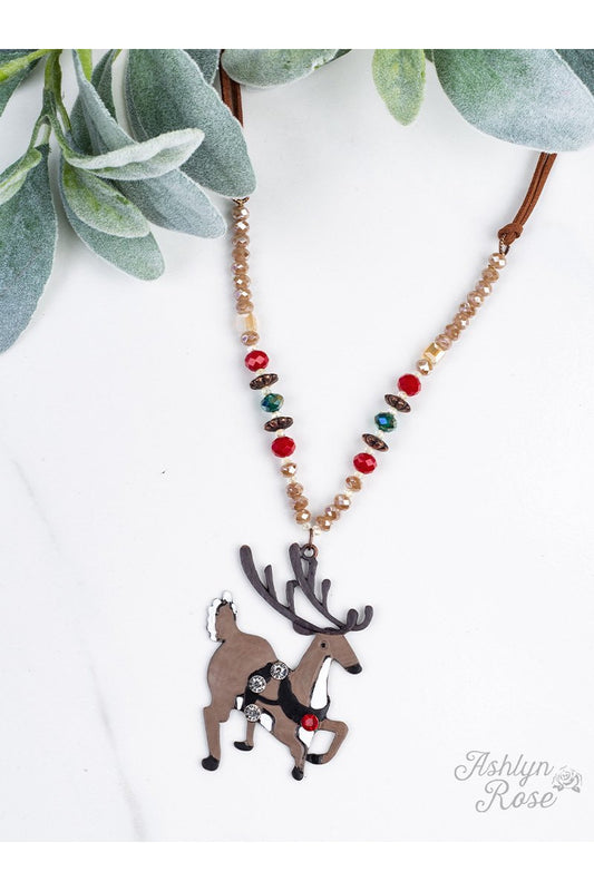 The Prancing Reindeer Pendant Necklace with Festive Beading