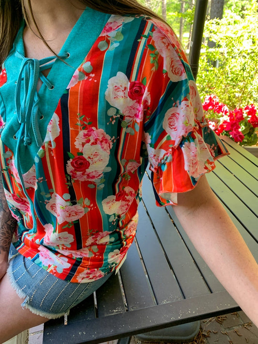 Pink Floral 3/4 Sleeve Lizzy Wrinkle Free Top
