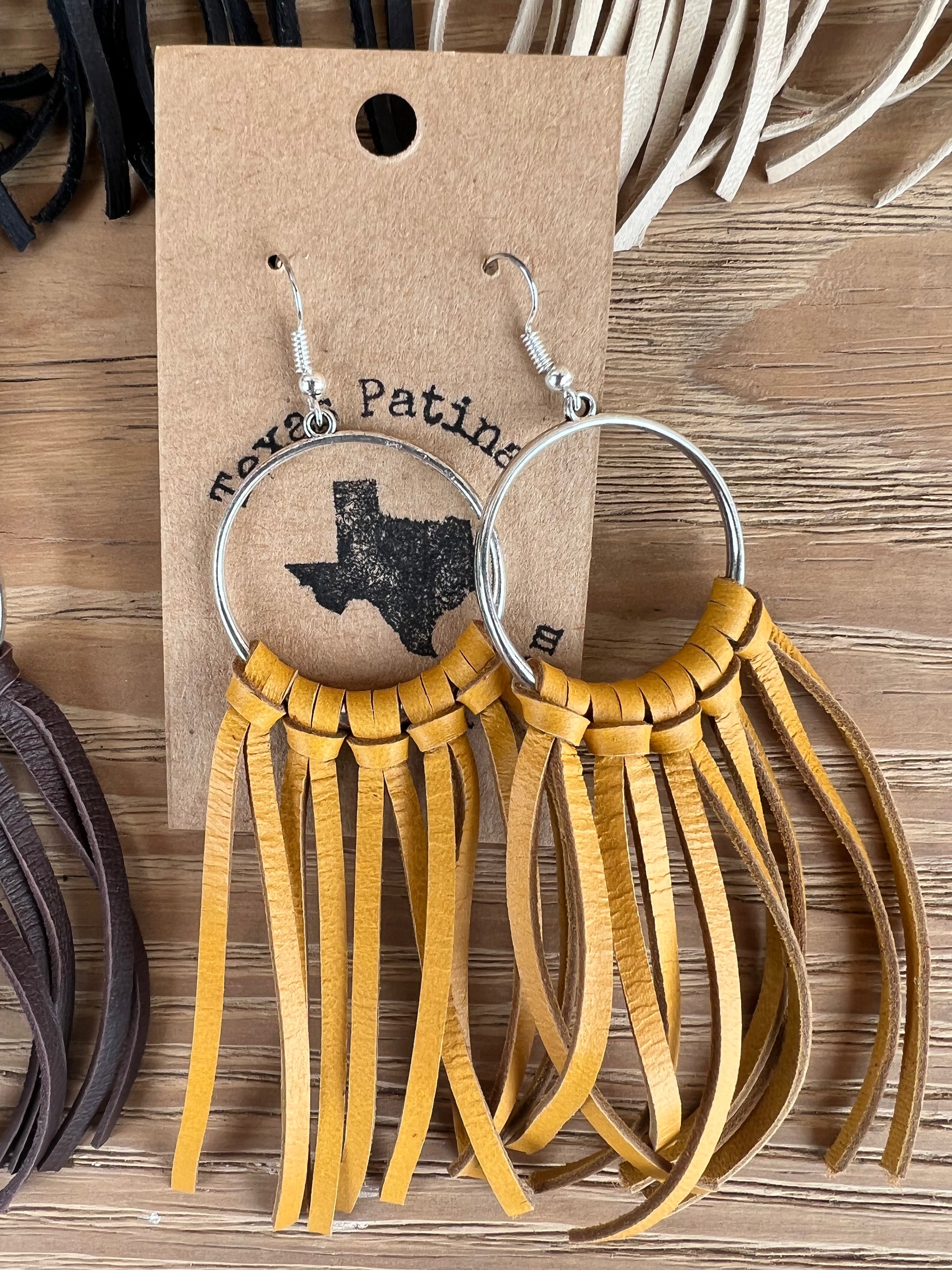 Mini hoop. Super cute earrings 5 inch long. Not heavy! Real deerskin.