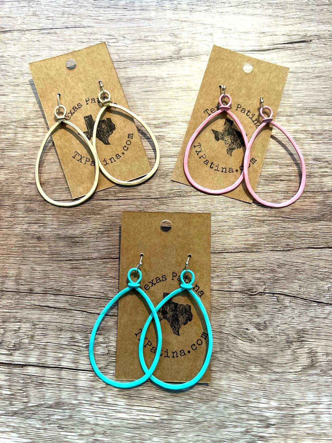 Sleek, lightweight, and effortlessly stylish—these open teardrop earrings add the perfect pop of color to any look. Crafted in a matte finish, they bring a modern twist to a timeless silhouette. Available in ivory, pink, and turquoise.