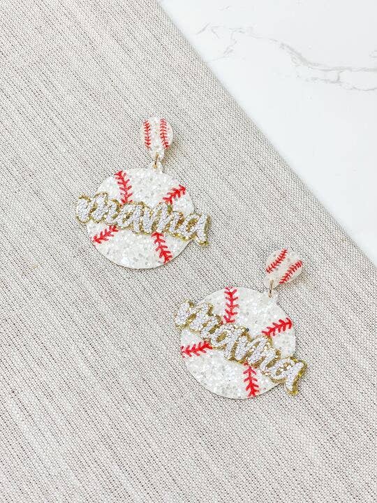 Embrace your athletic spirit with our Sports Mama Glitter Dangle Earrings from Prep Obsessed Wholesale. Measuring 2.25" in length, these earrings are a striking blend of style and sparkle. They're designed to be both lead and nickel compliant, ensuring a comfortable wear. These earrings are no exception, embodying our brand's commitment to quality and charm. Enjoy the blend of style and sports enthusiasm with these glittering dangle earrings.