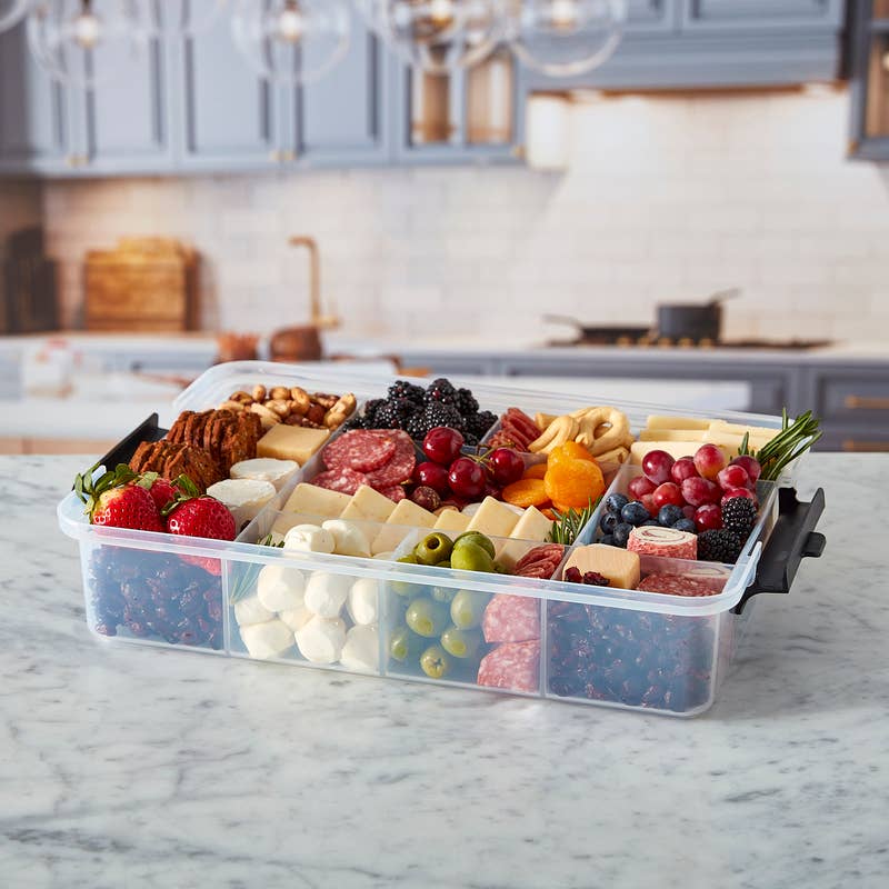 Snack smarter with the Bamboo Snacklebox—your new favorite companion for every adventure. Featuring 11 compartments, you can mix and match your favorite treats, keeping everything organized and ready to grab. The reversible bamboo lid doubles as a cutting board, so you can prep and plate on the fly—perfect for slicing fruit, chopping veggies, or plating snacks with style. Secure locking handles keep your goodies safe and sealed during picnics, road trips, sports events, or lazy days at home. Dishwasher safe for easy cleanup. Make it. Take it. Enjoy it.™ Your snacking game just leveled up.