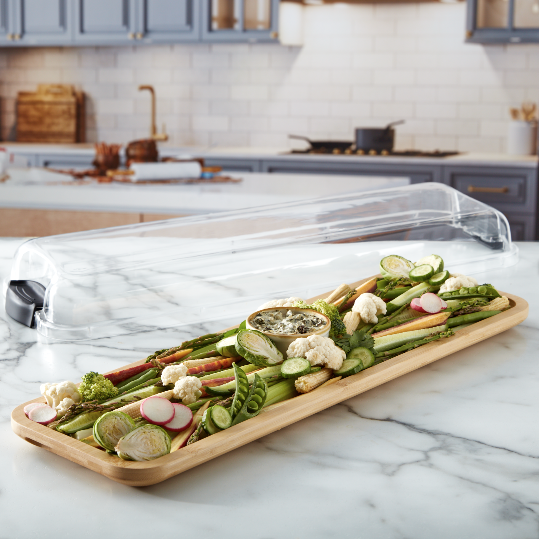 Make It. Take It. Enjoy It. Transform any gathering into a show-stopping spread with the Farberware Build-A-Board bamboo cutting board. This sleek 7x22-inch design gives you plenty of room to layer cheeses, cured meats, fresh fruits, and nuts into Instagram-worthy charcuterie magic. The built-in compartments keep everything organized and prevent flavors from mingling, while the secure locking lid locks in freshness and makes transport a breeze—perfect for picnics, potlucks, or impromptu dinner parties. Host like a pro with a board that's as fun to fill as it is to serve from.