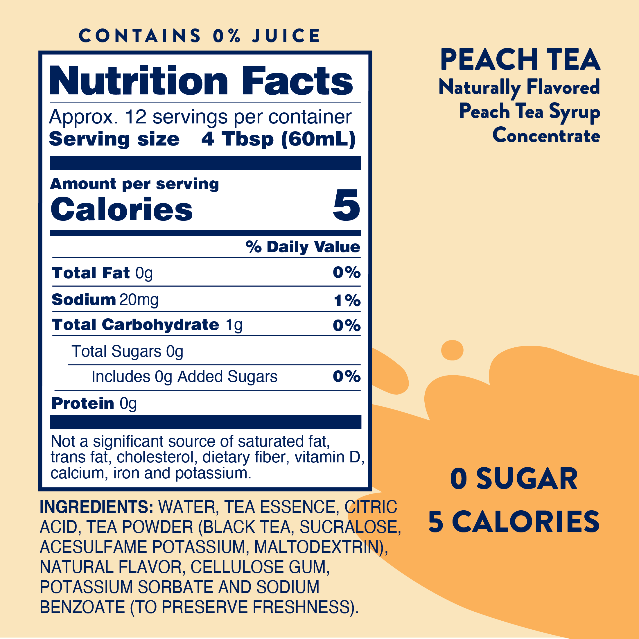 Each bottle contains enough concentrated syrup to whip up 12 servings of refreshing peach tea. Whether you're hosting a barbecue, lounging by the pool, or simply craving a sweet treat, our Sugar Free Peach Tea Syrup Concentrate is the perfect companion for all your springtime, summertime (or anytime!) adventures.